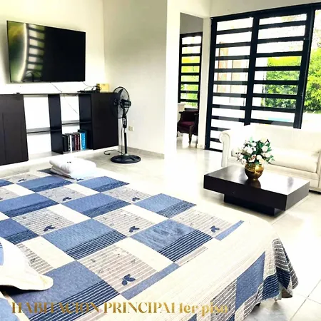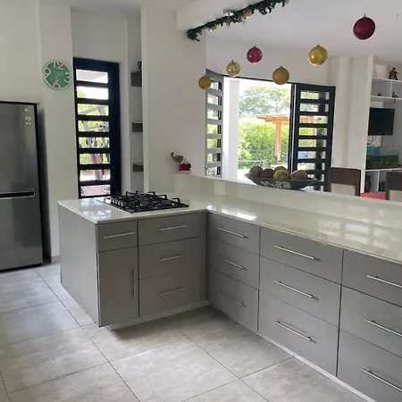 Questo luogo garantisce un soggiorno confortevole grazie a una cucina completamente attrezzata con un microonde, un frigo e utensili da cucina. L'aeroporto di Villavicencio dista 20 km da questa villa.